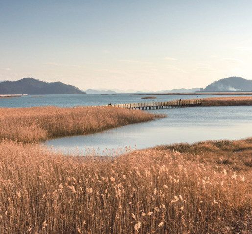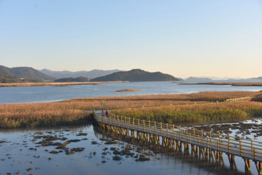 바다와 갈대를 보며 걸을 수 있는 2.8km의 생태탐방로와 쉼터가 걷는 재미를 더합니다. 온전히 갈대밭을 지나는 구간도 있고, 갯벌 위를 통과하는 길도 있습니다. 바닷길 따라 튼튼하게 설치된 나무데크 덕분에 편안하게 생태계를 관찰하고, 큰고니 조형물 등 다양한 볼거리를 즐기며 휴식을 즐길 수 있습니다.