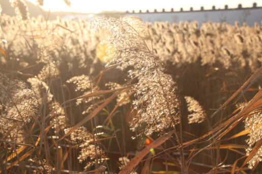 | 청명한 하늘, 잔잔한 황금빛으로 무르익는 갈대 군락지?![]()