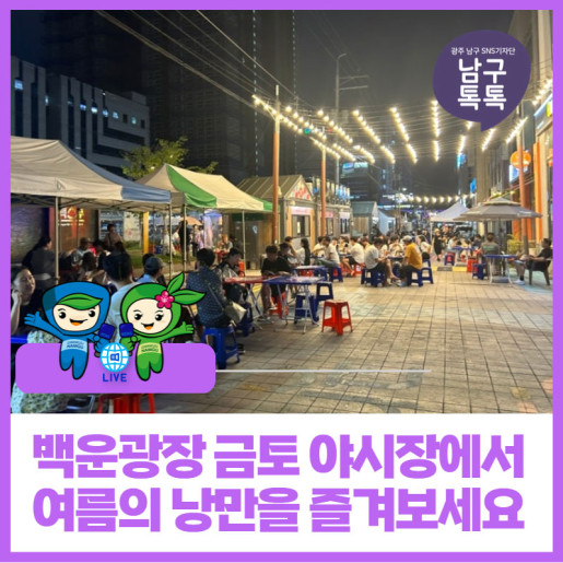 아름다운 조명이 빛나는 푸른길 브릿지를 지나 백운광장 금토 야시장에서 여름의 낭만을 즐겨보세요~