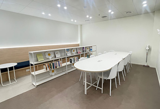 휴게실 및 프로그램실 : 수용인원 15명, 집기(탁자 4개, 쇼파, 의자 10개), 프로젝터, 도서 등
